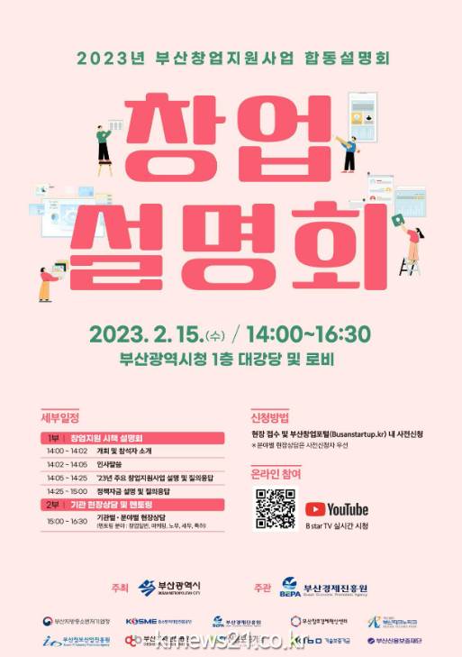 ▲ 사진=부산광역시부산시(시장 박형준)는 오는 15일 오후 2시, 시청 1층 대강당에서 10개 창업지원기관*과 함께 최초로 온·오프라인 동시 진행하는 「2023년도 부산 창업지원사업 합동설명회」를 개최한다고 밝혔다.