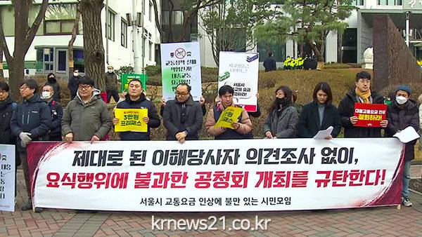 이어 “시민들에게 큰 영향을 미치는 사안임에도 서울시는 시민들의 의견을 수렴하지 않은 채, 일방적으로 인상안을 발표했다”면서 “관계기관 협의가 부족하다는 이유로 공청회 일정조차 번복되는 등 수많은 문제점이 있었다”고 주장했다.