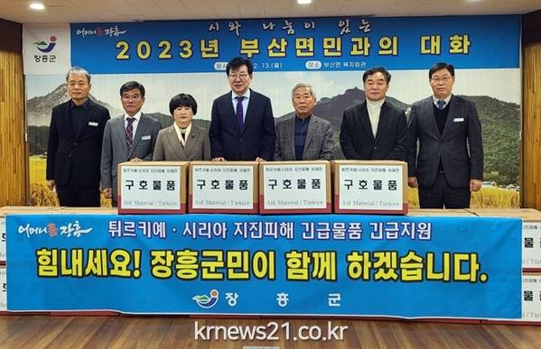 장흥군은 이달 13일부터 20일까지 군민과의 대화를 추진하고 있는데, 첫날인 13일 부산면과 장동면에서 구호물품 전달했다.