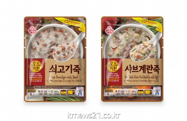 ▲ 사진=오뚜기오뚜기가 풍부한 원재료로 식감과 풍미가 살아있는 프리미엄 HMR ‘오즈키친 파우치죽' 신제품 2종을 출시했다.