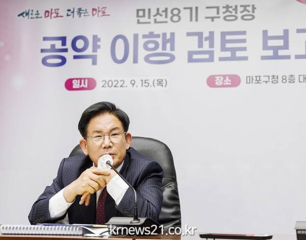▲ 사진=공약이행검토보고회에 참석한 박강수 마포구청장마포구(구청장 박강수)가 11년째 표류 중이던 상암동 DMC 랜드마크 사업의 신속추진을 위해 쏟아온 노력의 결실을 맺었다.
