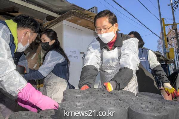 ▲ 사진=최호권 영등포구청장이 연탄 봉사에 참여한 모습/영등포구 제공영등포구(구청장 최호권)가 ‘2023 희망온돌 따뜻한 겨울나기’ 모금 사업을 통해 22억 7천만 원(성금 11억 2천만 원, 성품 11억 5천만 원) 상당의 역대 최대 모금액을 달성했다고 밝혔다.