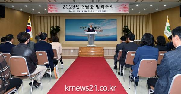 또한, “3월은 시정에 있어서 그간 준비해 온 각종 건설사업과 시책들이 본격적으로 추진되는 달”이라며, “해빙기 안전대책과 봄철 산불예방 활동에 만전을 기하고, 봄맞이 환경정비와 국·도비 및 각종 공모사업비 확보에 적극적으로 노력해 줄 것”을 당부하였다.