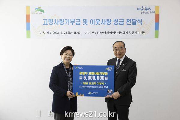 김한기 이사장은 고향사랑기부금 이외에도 취약계층을 위한 이웃사랑 성금 500만 원 사회복지공동모금회에 기탁, 총 1,000만 원을 은평구에 쾌척했다.