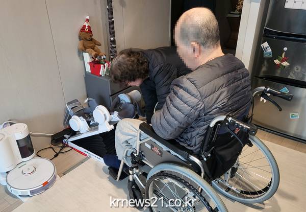 로봇재활서비스는 장애인 가정에 2개월 간 로봇재활기기를 대여해 맞춤형 상하지 재활운동서비스를 제공하는 사업이다. 로봇재활기기를 활용할 경우 근력강화는 물론 마비로 인해 구축이 있는 경우 관절가동범위를 늘려주고 구축이 더 이상 진행되지 않도록 예방할 수 있다.