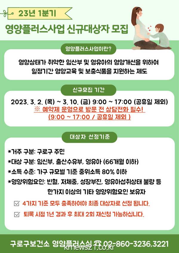 구로구가 2023년 1분기 ‘영양플러스사업’ 신규대상자를 모집한다.
