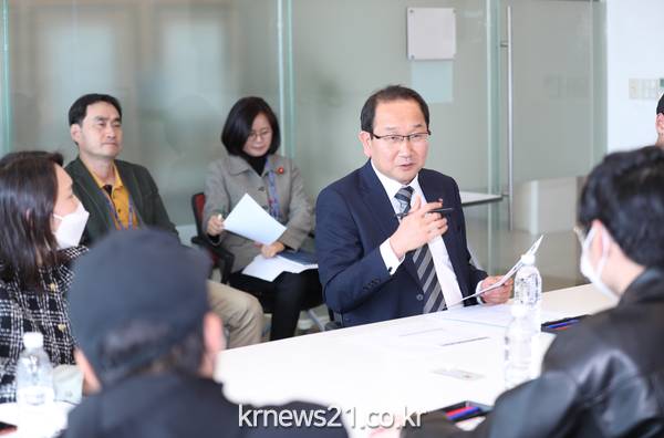 ▲ 사진=제주시강병삼 제주시장은 지난 7일, 청정 제주를 만들기 위해 플로깅 활동을 진행하는 플로그(P_log, 대표 오선미)팀과 ‘찾아가는 2040 화(和)통(通) 간담회’를 개최했다.