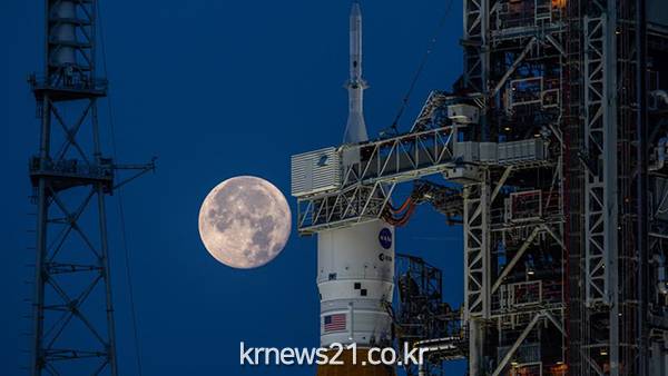 ▲ 사진=연합뉴스 / NASA 제공미국 항공우주국(NASA)이 달 궤도까지 유인비행을 다녀오는 ‘아르테미스(Artemis) 2’를 내년 11월 말에 발사키로 했다.