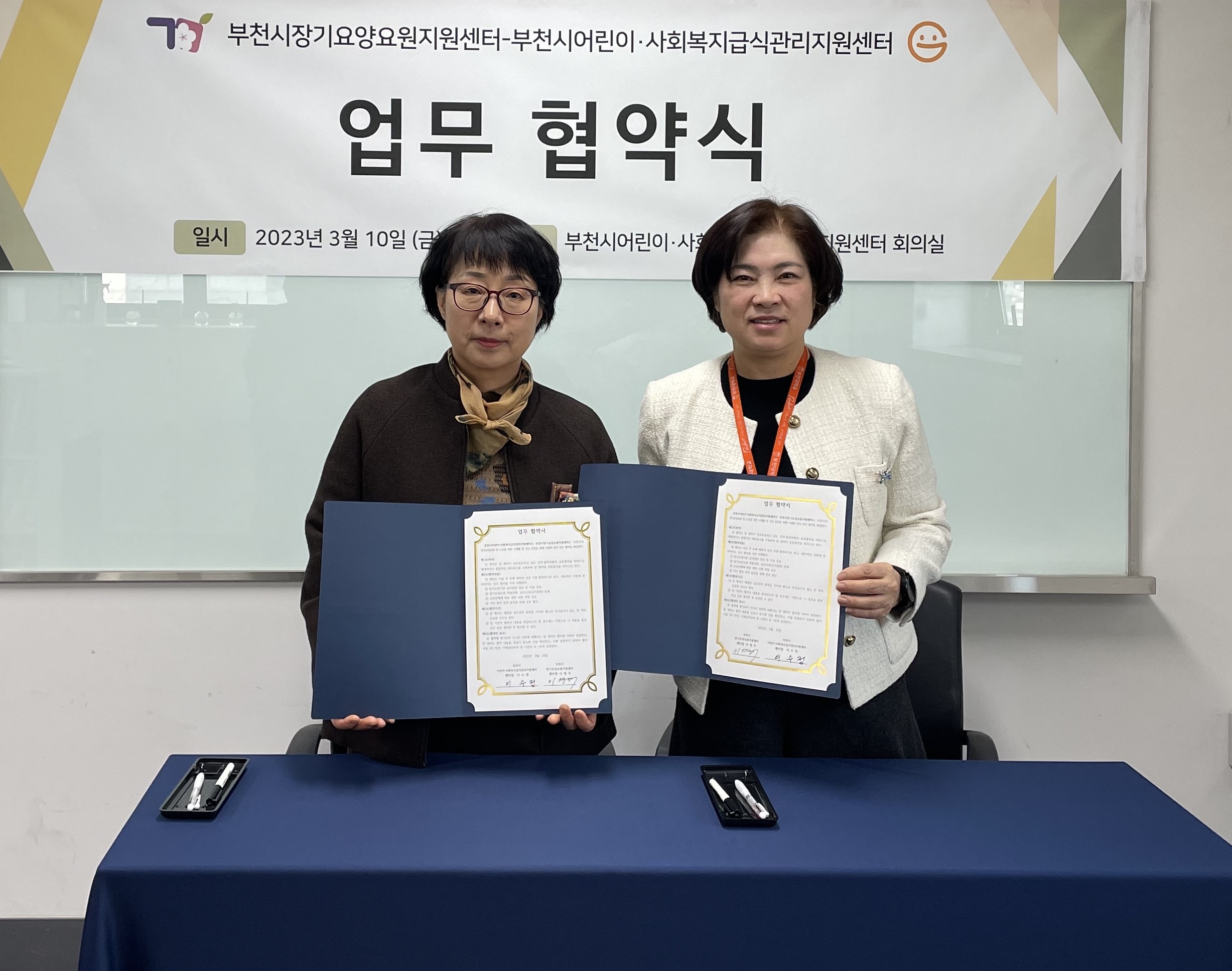본 협약은 이수정 부천시어린이‧사회복지급식관리지원센터장과 이영주 부천시장기요양요원지원센터장이 참석했으며, 이번 협약을 통해 양 기관은 ▲장기요양기관 급식관련 정보 공유 ▲급식관련 실무교육 연계 등 상호 교류 및 공동 발전을 위한 협력에 합의했다.