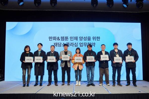 협약식에 참여한 한국만화웹툰학회 김종옥 부회장은 “이번 협약은 대학의 교육 과정과 산업체의 신예 웹툰 작가 발굴 과정이 일체화될 수 있는 계기가 될 것”이라며 “장학금을 받은 학생이나 그렇지 않은 학생도 동반 성장할 수 있는 공모전을 만들겠다”고 밝혔다.