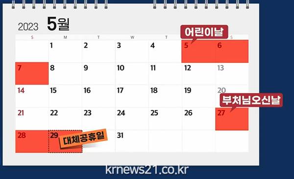 당장 5월 27일 부처님오신날부터 적용되면 어린이날과 겹친 사흘 연휴에 이어 5월에 사흘 연휴가 한 번 더 생긴다.