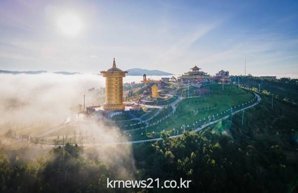 ▲ 사진=Samten Hills Dalat베트남 달랏의 문화 영성 관광단지 Samten Hills Dalat에 만들어진 거대한 기도 바퀴 ‘Drigung Kagyu Rinchen Khorchen Khorwe Go Gek’이 3월 11일 최초로 공개됐다. 이 기도 바퀴는 세계 최대의 기도 바퀴로 기네스 세계 기록에 등재됐다.