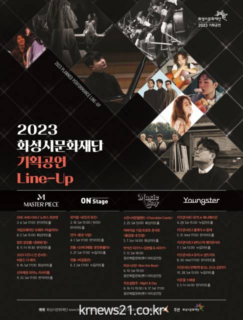 ▲ 사진=화성시문화재단올해 창립 15주년을 맞이한 화성시문화재단(대표이사 김신아)이 2023년 기획공연을 선보인다. 최신 경향 작품을 소개하는 온 스테이지(On stage), 클래식 걸작 시리즈 마스터피스(Masterpiece), 어린이·청소년 맞춤 프로그램 영스터(Youngster), 대중음악과 피크닉을 결합한 뮤직 스테이(Music Stay)로 주요 시리즈를 구성해 관객의 선택권을 넓히고 남녀노소 누구나 공연예술을 즐길 수 있도록 마련했다.