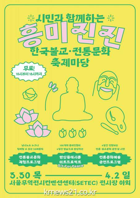 ▲ 사진=마인드디자인시민과 함께하는 ‘흥미진진! 한국불교 전통문화 체험마당’이 서울국제불교박람회의 연계행사로 3월 30일부터 4월 2일까지 서울무역전시컨벤션센터(SETEC) 야외마당에서 진행된다. 이번 행사는 불교신문이 주관하고 마인드디자인이 기획 및 운영하는 서울 도심에서 불교와 한국 전통문화를 체험할 수 있는 오감만족 프로그램이다.