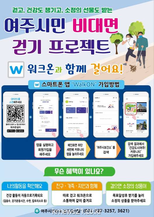 여주시보건소(소장 최영성)는 여주시민의 걷기 생활화를 위해 모바일 건강관리 플랫폼 워크온을 오는 4월 3일부터 운영한다고 밝혔다.