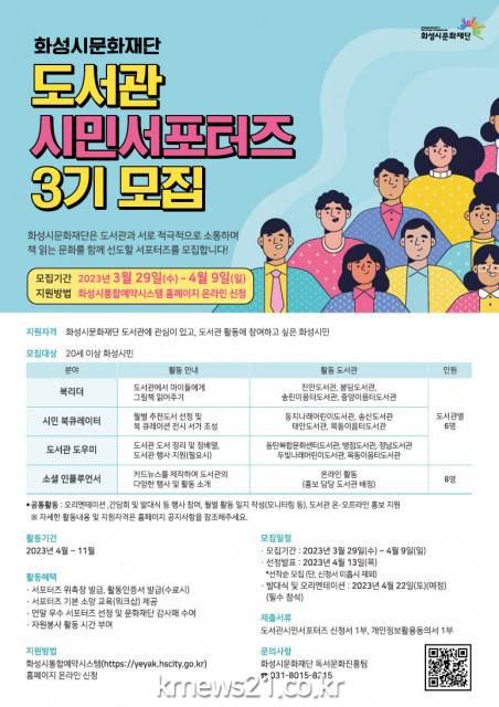 ▲ 사진=화성시립도서관화성시문화재단(대표이사 김신아)은 ‘도서관시민서포터즈’ 3기 지원자를 모집한다.