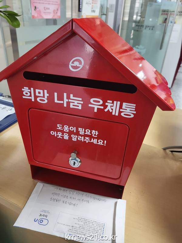 우체통 속 편지봉투에는 “사회복지담당 여러분 수고가 많으십니다. 어려운 이웃을 위해 써주세요. 오랫동안 모은 겁니다.”라는 글과 함께 현금 100만 원이 들어있었다.