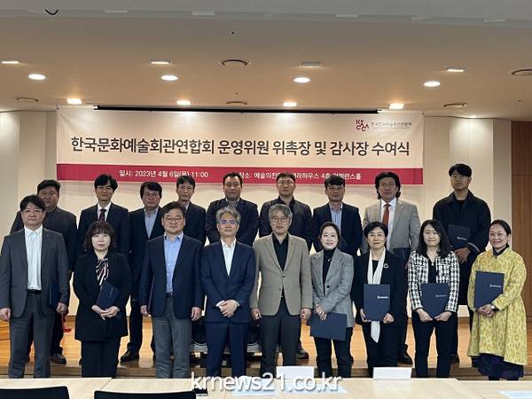 ▲ 사진=한국문화예술회관연합회한국문화예술회관연합회(회장 이승정, 이하 코카카)가 4월 6일 예술의전당 컨퍼런스홀에서 코카카 운영위원회 위촉식을 개최했다고 7일 밝혔다.