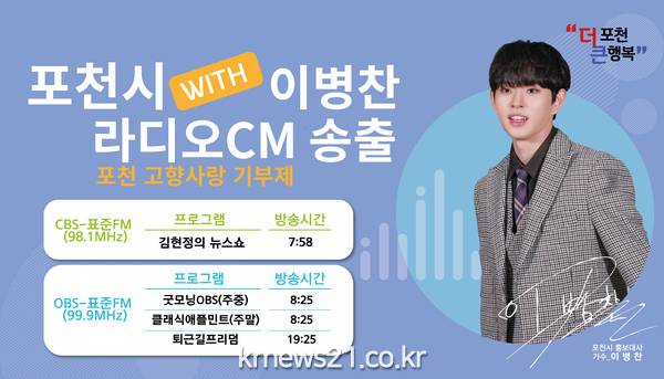 포천 고향사랑기부제 홍보 CM은 포천시 홍보대사 가수 이병찬이 포천미디어센터에서 녹음을 했으며, 오는 5월 1일까지 CBS라디오(98.1MHz), 6월 9일까지 OBS라디오(99.9MHz)에 송출된다.
