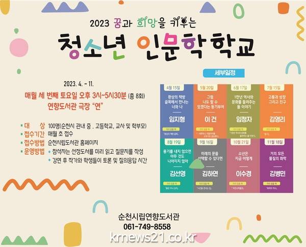 순천시립연향도서관은 청소년도서 작가와 만나는 ‘청소년 인문학학교’를 운영한다고 밝혔다.