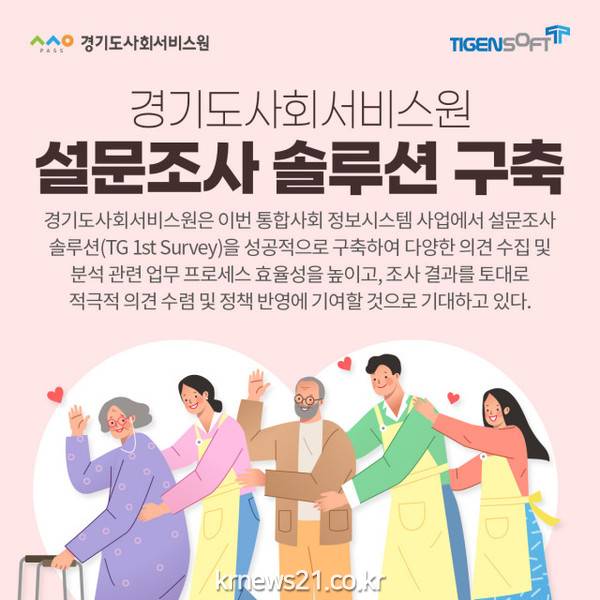 경기도사회서비스원은 경기도 내 돌봄을 직접 제공하고 사회서비스 공공성 강화 및 품질 향상을 위해 설립됐다. 이번 통합사회 정보시스템 사업에서 설문조사 솔루션(TG 1st Survey)을 성공적으로 구축해 다양한 의견 수집 및 분석 관련 업무 프로세스 효율성을 높이고, 조사 결과를 토대로 적극적 의견 수렴 및 정책 반영에 기여할 것으로 기대하고 있다.