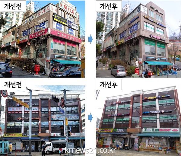 구는 ‘내를건너숲길 문화거리’ 조성과 함께 지난해 1월부터 올해 3월까지 LED 간판개선 사업을 추진했다. 무질서하게 난립한 불법 간판을 정비하고 지역 특성에 어울리는 간판을 설치했다.
