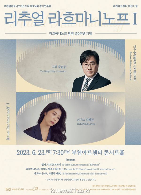 6월 23일(금)은 부천필하모닉오케스트라의 개관기념 공연 <리추얼 라흐마니노프Ⅰ>을 만나볼 수 있다. 2023 시즌 부천필이 라흐마니노프 탄생 150주년을 맞아 특별 기획한 ‘리추얼 라흐마니노프 시리즈’의 첫선을 보이는 자리로 이 역시 의미가 남다르다. 총 4회에 걸쳐 완성될 프로젝트는 피아노 협주곡 1번과 교향곡 1번으로 시작한다. 협연에는 피아니스트 김혜진이 나선다. 물론 이 또한 오르간이 돋보이는 프로그램으로 창대한 처음을 알린다. 마음을 드높인다는 뜻을 가진 엘가의 ‘수르숨 코르다’에서 들리는 오르간의 명징한 울림은 과연 개관기념 공연에 걸맞은 경건함이 있다.