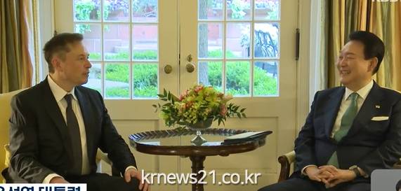 윤 대통령은 현지시각 27일 한미정상회담 직후, 테슬라측 요청으로 일론 머스크 최고경영자를 접견한 자리에서 한국은 테슬라 전기차 생산설비인 '기가팩토리'를 운용하는 데 최고의 효율을 거둘 수 있는 국가라며 이같이 말했다고, 최상목 경제수석이 전했다.