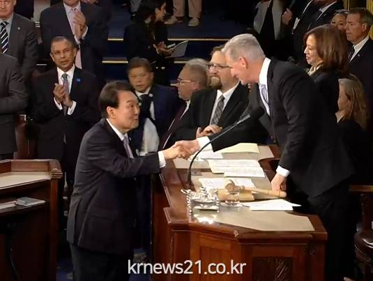 ▲ 사진=KBS NEWS 영상 캡처미국을 국빈 방문 중인 윤석열 대통령이 한국시간 오늘 새벽, 미 의회에서 영어로 상·하원 합동 연설을 했다.