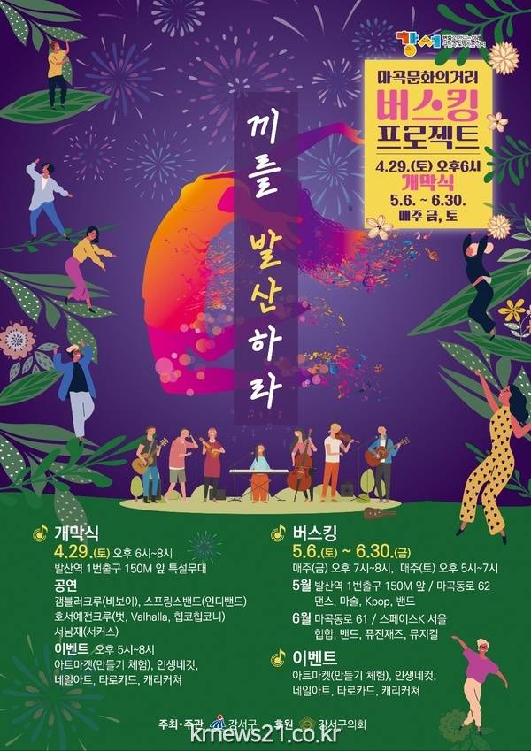 서울 강서구(구청장 김태우)는 젊음과 예술이 넘치는 거리 축제 ‘끼를 발산하라! 마곡 문화의 거리 버스킹’을 개막한다고 밝혔다.