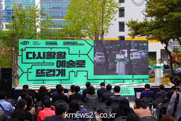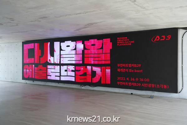 부천문화재단(대표이사 김정환)은 4월 26일(수) 부천아트벙커B39에서 재개관 기념식 ‘리:부트’(Re:boot)를 개최했다. 행사는 ▲시민공동체공간(구 관리동) 앞 테이프 커팅식 ▲기념식수 식재 ▲부천아트벙커B39 운영 경과 보고 ▲내빈 기념사 및 축사 ▲공로패 수여 ▲축하공연 ▲재개관 기념 특별전시 ▲부천아트벙커B39 아카이브 전시 등으로 이뤄졌다.