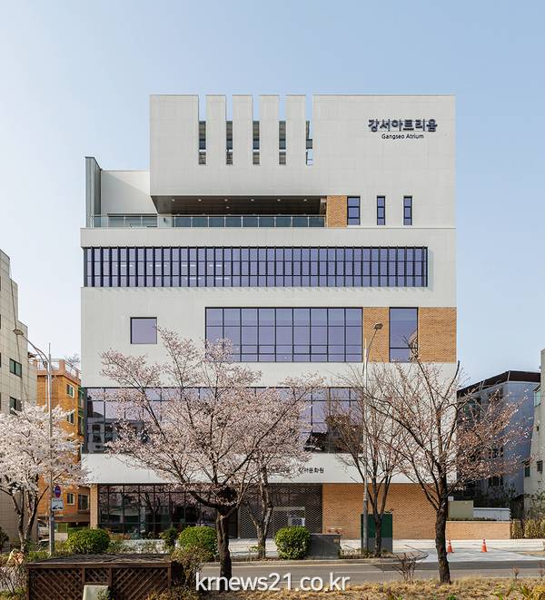 2020년 8월 착공한 강서아트리움은 화곡동 379-68번지 일대 연면적 4,228㎡에 지하 2층, 지상 5층 규모로 총 349억 원의 사업비가 투입돼 조성됐다.