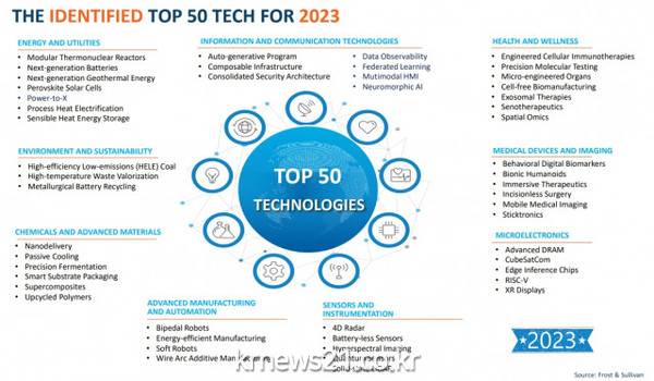 ▲ 사진=프로스트 앤드 설리번글로벌 컨설팅 기업인 프로스트 앤드 설리번은 최근 ‘2023 글로벌 성장 기회 창출을 이끌어갈 톱50 이머징 기술 분석 보고서(Top 50 Emerging Technologies Fueling Global Growth Opportunities 2023 Edition)’를 발표했다.