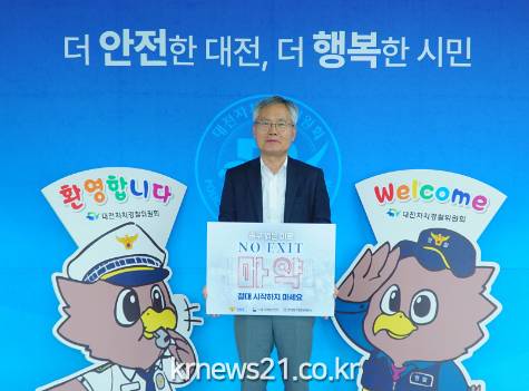 ▲ 사진=대전광역시대전자치경찰위원 강영욱 위원장은 5. 3.(수) 경찰청과 식품의약품안전처, 한국마약퇴치운동본부가 공동 주최하는 마약범죄 예방을 위한 ‘NO EXIT' 릴레이 캠페인에 참여했다.