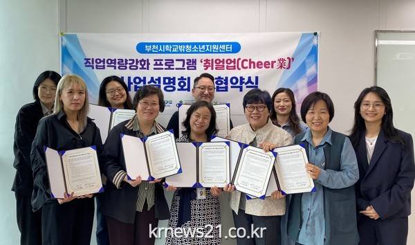 □ 부천여성청소년재단(대표 양선희)은 지난 4월 28일, 부천시학교밖청소년지원센터(센터장 백진현)가 학교 밖 청소년 직업역량강화프로그램 취얼업(Cheer業) 사업설명회 및 협약식을 개최하였다고 전했다.