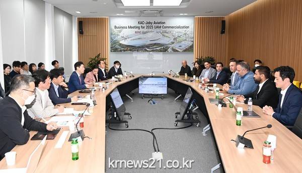 한국공항공사(사장 윤형중)는 8일, 서울시 강서구 본사에서 ‘2025년 UAM 상용화’ 국정과제 달성을 위해 세계 최고의 UAM 항공기 기술력을 보유한 美 조비 에비에이션(Joby Aviation) 社와 UAM 핵심기술 교류 워크숍을 개최했다.