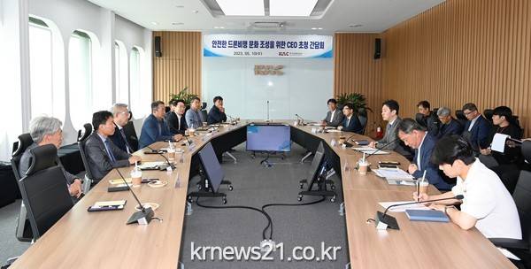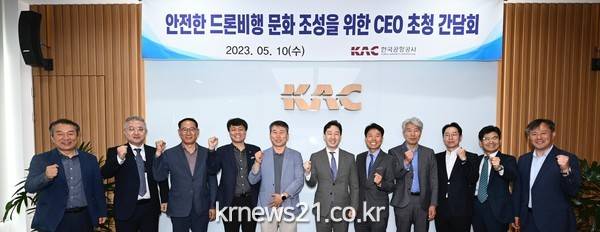 한국공항공사(사장 윤형중)는 10일, 서울 강서구 본사에서 드론산업 분야 8개 기관 및 업체* 대표들을 초청해 ‘안전한 드론비행 문화 구축’을 위한 간담회를 개최했다.