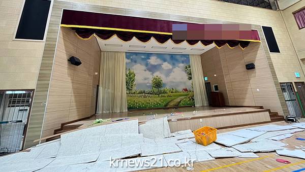 오늘 낮 12시 25분쯤 전남 여수시 문수동의 한 초등학교 강당 천장벽 석고보드 일부가 떨어져 교사 1명과 학생 13명 등 14명이 다쳤다.