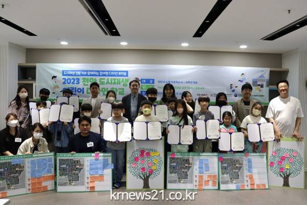 천안시 도시재생지원센터는 13일 한국 도시설계학회 도시재생연구위원회와 함께 천안시 소재 초등학생 16여 명이 참석한 가운데 ‘2023 천안시 도시재생 어린이 디자인학교’ 수료식을 개최했다.