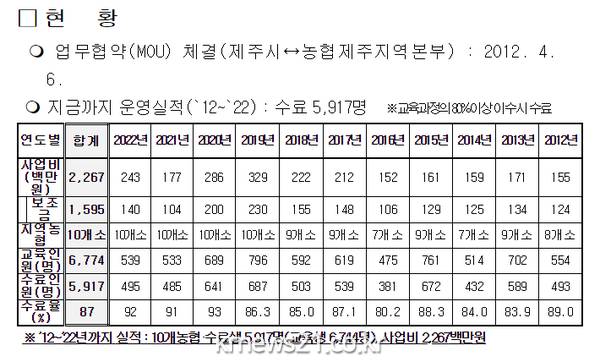 현호경 농정과장은 “제주 농업인의 역량 강화, 농업․농촌 지역의 권리와 삶의 질 향상을 위해 수준높은 맞춤형 전문 농업교육프로그램으로 운영해 나가겠다”고 말했다.