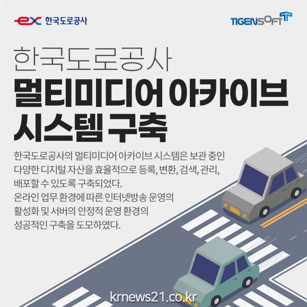 한국도로공사 멀티미디어 아카이브 시스템은 한국도로공사의 동영상, 음성 파일, 사진 등 직원 PC에 보관된 다양한 디지털 자산을 효율적으로 등록, 변환, 검색, 관리, 배포할 수 있도록 구축됐다. 온라인 업무 환경 확산에 따른 인터넷 방송 운영의 활성화 및 채팅 기능을 통한 양방향 소통, 서버의 안정적 운영 환경의 성공적인 구축을 도모했다. 이번 구축 사업으로 멀티미디어 콘텐츠의 안정적 보관, 관리, 활용 및 인터넷 방송 활성화를 통해 임직원 간 자료 공유를 원활하게 할 수 있게 돼 업무 효율성 향상을 기대하고 있다.