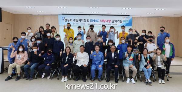 광양에 본사를 두고 광양 지역 인재를 적극적으로 채용하고 있는 SNNC는 지역 사회 복지 증진을 위해 장애인 밑반찬 지원, 장애 인식 개선, 무장애 광양 만들기, 찾아가는 사진관 등 다양한 사업을 삼동회 광양시지회와 함께 펼치고 있으며 봉사활동 진행 시 장애인 직업 재활 시설인 서산나래에서 빵을 구입해 간식으로 제공하고 있다.