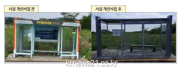 ▲ 사진=제주시제주시는 쾌적하고 편리한 대중교통 환경 조성을 위해 2억 9천만 원을 투입하여 비가림 버스승차대 시설 개선사업을 완료했다고 밝혔다.