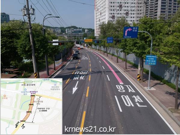 아울러 용인대입구삼거리 시청방향 좌회전 대기공간을 150m에서 300m로 확장하고 시청 방향 좌회전 신호를 35초에서 45초로 조정했다.