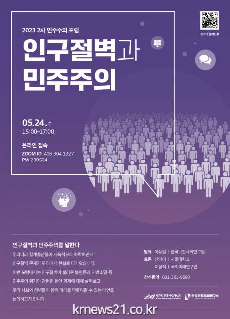 ▲ 사진=민주화운동기념사업회민주화운동기념사업회(이사장 지선, 이하 사업회)가 5월 24일(수) 15시 ‘인구절벽과 민주주의’를 주제로 ‘2023년 제2차 민주주의 포럼’을 개최한다.