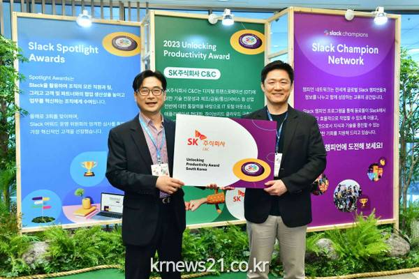 ▲ 사진=슬랙기업용 생산성 플랫폼 슬랙(Slack)이 업무 혁신을 주도한 기업을 선정하는 ‘스포트라이트 어워즈’를 개최하고 SK C&C에 ‘2023 생산성 혁신(unlocking productivity) 어워드’를 수여했다.