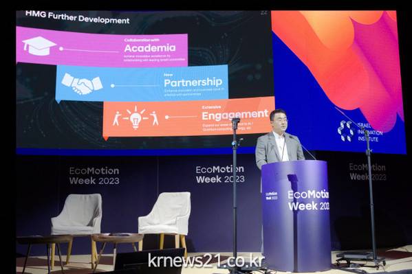 ▲ 사진=현대자동차그룹현대자동차그룹이 스타트업의 요람으로 불리는 이스라엘에서 혁신 생태계 조성에 기여하고 있다. 현대차그룹은 23일(현지 시각) 이스라엘 텔 아비브(Tel Aviv)에서 열린 ‘에코모션 위크 2023(EcoMotion Week 2023)’에 참여했다.