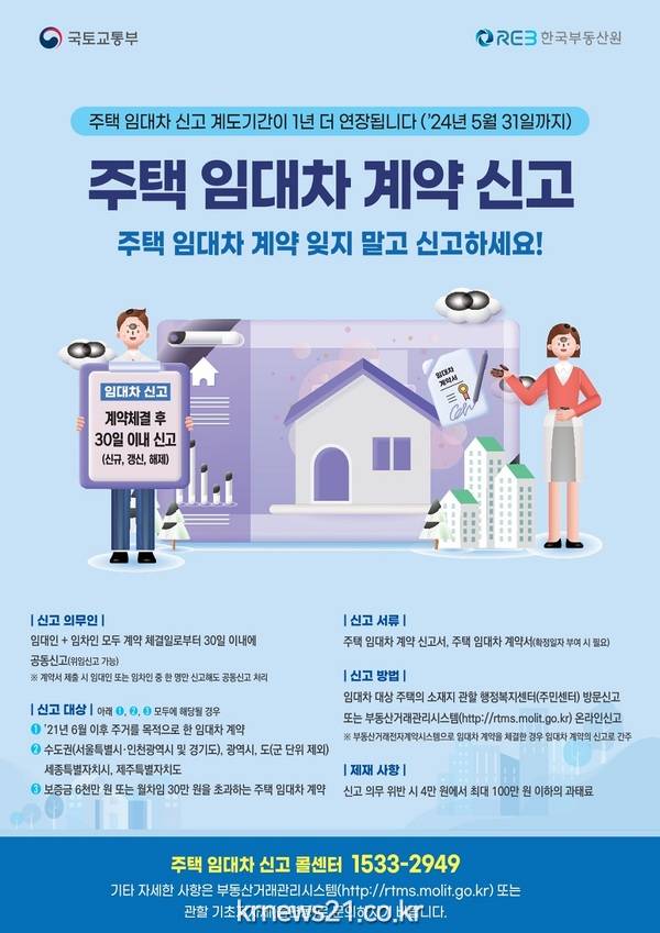 내년 5월 31일까지 연장, 임대차 계약 시 30일 이내 신고 의무는 유지