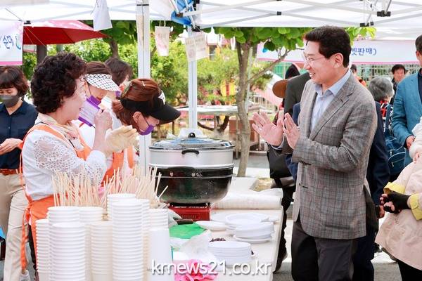 ▲ 사진= 이상일 용인특례시장이 26일 용인시기흥노인복지관 개관 8주년 기념 ‘2023년 기흥 孝(효) 행복드림’ 행사에 참석해 자원봉사자들을 격려했다.용인특례시(시장 이상일)는 용인시기흥노인복지관(관장 임형규)이 26일 개관 8주년 기념 ‘2023년 기흥 孝(효) 행복드림’ 행사를 개최했다고 밝혔다.