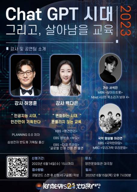 ▲ 사진=감엔터테인먼트양천문화재단이 미래 교육의 중요성과 미래 사회에 필요한 교육의 방향성을 주제로 ‘Chat GPT 시대, 그리고 살아남을 교육’ 토크콘서트를 6월 15일(목) 오후 7시 30분 양천문화회관 대극장에서 개최한다.